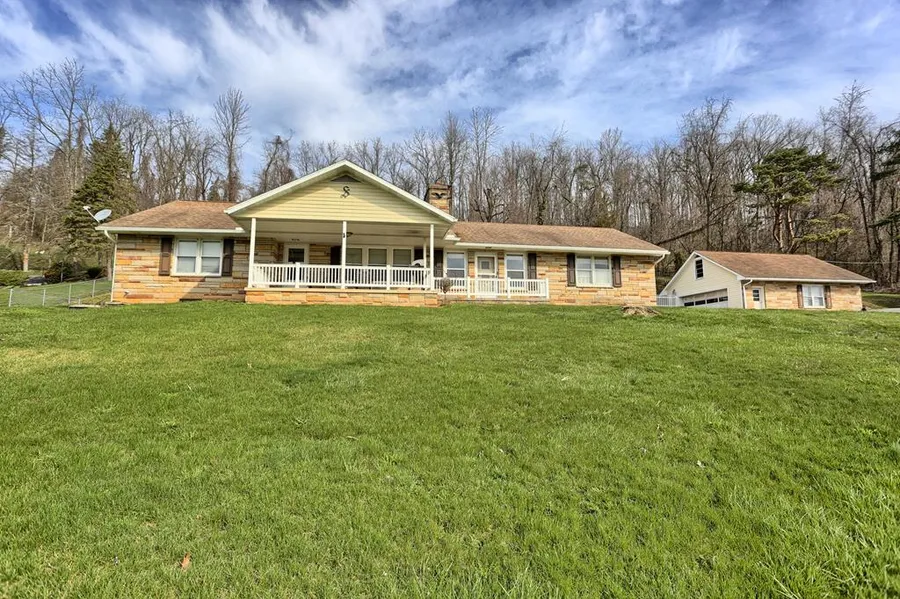 Gorgeous views await you at this 4 bedroom, 2 full bath with so much to offer! Main level features finished breezeway, Corian counters in kitchen, beautiful wood grain laminate flooring, stone fireplace in living room, 2 bedrooms and full bath. Upstairs you will find 2 more bedrooms, a full bath, and attic storage. Central Air, wood stove in full basement. 16x32 deck in rear, large covered porch out front for enjoying the endless scenery, 2 car attached garage plus 1 car detached and addional garage. 4 acres in rear and side.
