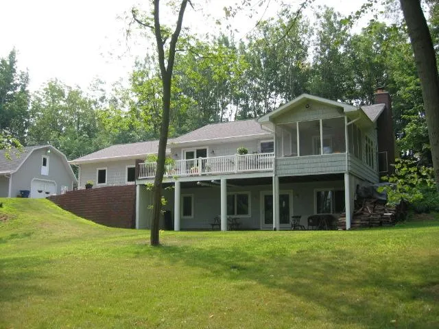 3 Acre wooded setting with 30x40 loft barn and pond! Gorgeous (vinyl shake sided) walkout ranch with many Pella windows & doors, 12x12 screened-in porch and 12x27 composite deck! Quality Amish built cherry kitchen cabinetry with granite countertops, pantry & snack bar! Cathedral ceiling dining area and living room with brick fireplace (gas log), laminate flooring, indirect lighting and an abundance of crown molding! Surround sound! Spacious main floor master suite with slider to deck, walk-in closet, private bath with 5.7' wide granite & tile shower! Jack & Jill bathroom. Open stairway leads to the walkout level family room with brick fireplace and barn-beam mantle! Knotty pine wainscoting in huge rec room area great for game tables! Pella sliding glass door leads to the patio. Low maintenance & energy efficient home with 2x6 exterior walls. Negotiable: hot tub & bar. Pond is stocked with fish. Beautifully landscaped yard with flower gardens, boulders, stone & brick retaining walls!