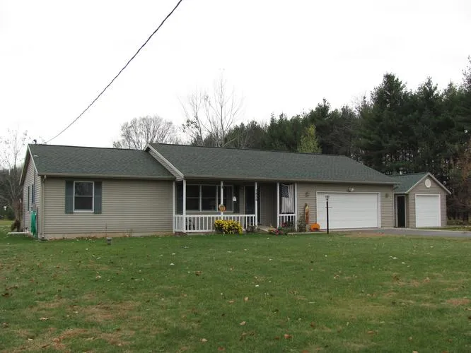 2 Acres, heated workshop plus (2) 12' x 12' storage buildings! Open layout with oak kitchen, 12.7' x 18' living room and main floor laundry room! You'll love the 15' x 20' sunroom addition with sliding glass door leading to the private 15' x 18' brick patio! 2 closets in master bedroom. Newer carpeting in bedrooms and hallway. Home square footage includes the sun room heated by a separate propane heater. Asphalt driveway with a turn-around. Relax on the covered front porch overlooking the beautifully landscaped yard! Reserved: freezer, shelf in sun room, windmill,bird feeder. Roof shingles (2 years). Quiet country location 5 miles southeast of Vicksburg on paved road. Beautifully treed yard includes: ornamental cherry, silver maple, red bud, white pine, maple and lilacs! Butterfly bush, poppy, peony, clematis, brown eyed susan and rose of sharon!