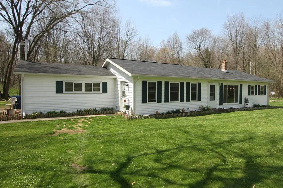 Cute and Ready to move in! 1500 sq.ft. ranch on a beautiful 2 acre lightly wooded site near Indian Lake. Brand NEW spacious kitchen with warm wood cabinets, new countertops and flooring. Formal dining room with new flooring, living room with small office area, nice, bright new bathroom, 3 bedrooms including nice size master. The entry room is a great place to great guests and talk at the snack bar space and it is large enough to use as a second TV area. There is a main floor laundry with folding table, large four season room overlooking the backyard, 1.5 car garage and adjacent storage shed. The lot is nicely wooded and landscaped. There are some new replacement windows and doors and vinyl siding.