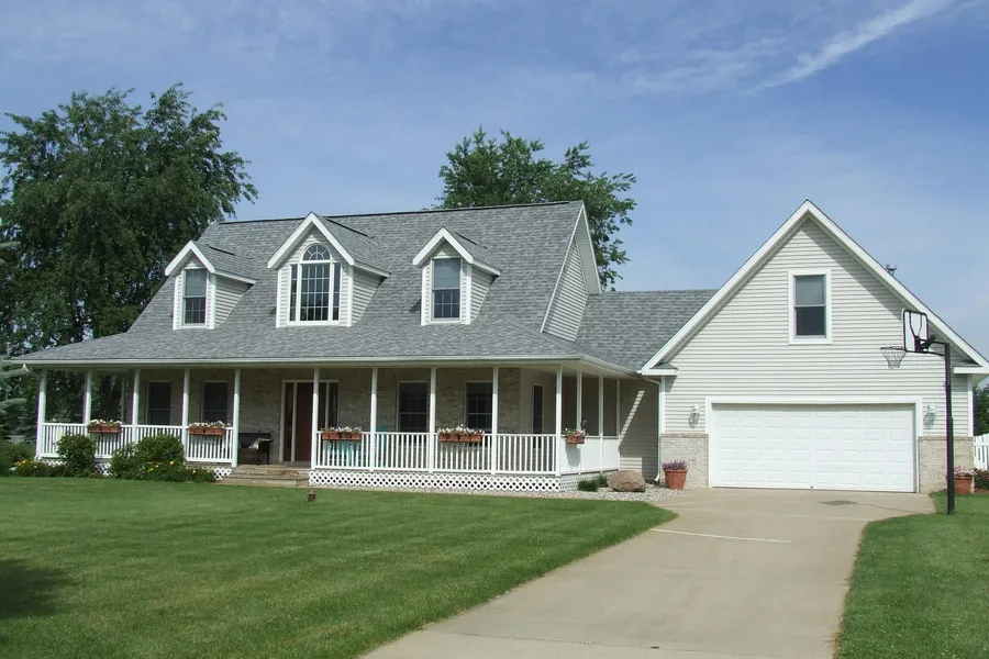 .8 Acres and beautiful cape cod in move-in condition! 2-story front entry has open staircase and ceramic tile floor. Cathedral ceiling living room has lovely Hearthstone direct vent fireplace and second floor balcony. Oak kitchen with snack bar includes new stainless steel appliances. Eating area has sliding glass door leading to back yard oasis! Spacious master suite with whirlpool tub, walk-in shower, double sink vanity and walk-in closet. There's a half bath off the main entry and main floor laundry. You'll love the large second floor family room with gas stove. Plastered walls & ceilings and new cellular shades. New roof shingles in 2013. Full basement has egress window. Enjoy the fenced back yard complete with in-ground pool and custom deck with built-in benches which is made of Australian Jarrah hardwood. Beautiful landscaping with many perennials! Convenient country neighborhood w...