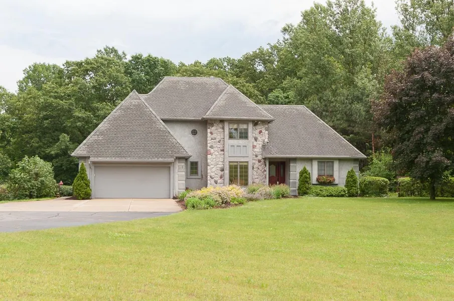 Lovely two story traditional walkout on 7 acres, Texas Twp, Mattawan schools with GEOTHERMAL HEAT AND AIR! Lovely setting down a winding drive and overlooking the woods and pond. Floor to ceiling windows in the Great Room w/stone FP and hardwood floors overlook the fabulous yard and woods. Informal dining area opens to the Hickory/Granite & Stainless kitchen with eating bar and a wall of pantries. The main floor master has hardwood, same views and a gorgeous master bath. There is an office with hardwood, MFL and half bath. Upstairs are 3 large bedroom and family bath. The walkout has a big family room with woodburner and door to the patio, huge bedroom and great full bath. The door off the dining area leads to a deck overlooking the pool and pond.