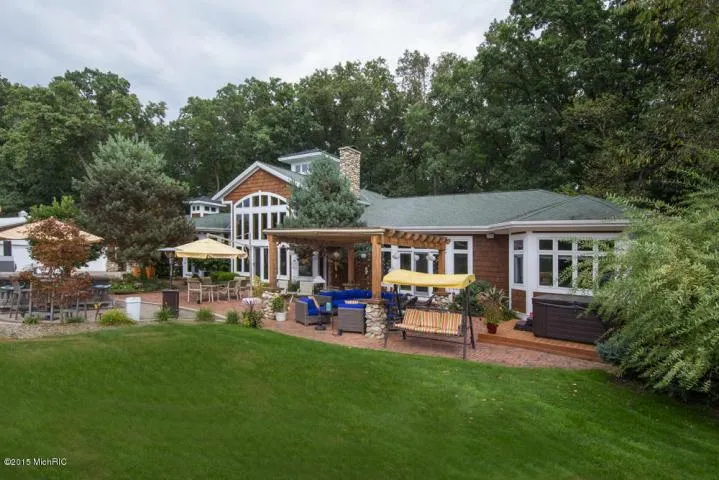 This is a grand estate...not just a spectacular home, but your own private resort. Among the features are beautiful outdoor spaces, tennis court, swimming pool with fabulous pool house with sauna, two patios, one with an outdoor kitchen and wood fired pizza oven.