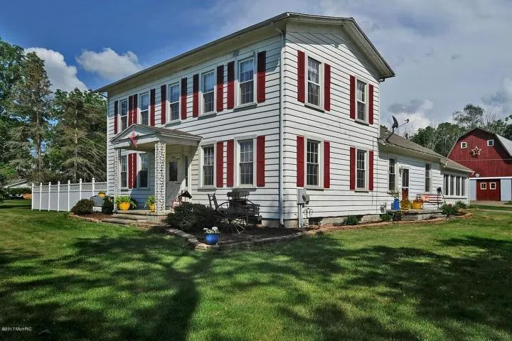 This grand home is set on 22 acres w/woods, trails & over 1800' of ftg. on Gull Creek. Built in mid 1800's this home has a historic past, once a stagecoach stop between Chicago & Detroit.The grand staircase in main foyer has original hand carved Walnut railing & Walnut stairs. High ceilings reminiscent of the era, large rooms & original Walnut trim remains.Main floor Sun rm, kitchen w/all appliances, dining area w/sliders to deck, laundry & 1/2 bath.Large formal dining rm opens to living room. Den/office connects to the master w/private bath/walk in closet & Fr. Door to /hot tub area. Up the grand stair case you'll find 3 large bedrooms & full bath. An attic area could be finished & has a staircase leading to the kitchen. There is a full basement for storage. A barn w/loft & new roof ideal for workshop, studio, not to mention livestock. Gull Creek meanders through the property, near the ...