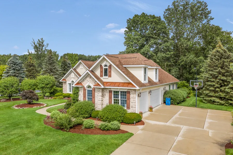 Amazing custom built ranch home along scenic Flowerfield Creek in Woodbrook Estates. As you walk in the front door you will be greeted by a lovely foyer that opens to the living room with vaulted ceilings and gas fireplace. The entry is flanked by the formal dining room, with lovely windows to let lots of light in, and an office or sitting room. The kitchen has abundant counters and cabinets as well as eat in dining. On one end of the home you will find the powder room, main floor laundry as well a stunning main bedroom with doors to a private patio, new carpet, two walk in closets, main bath with soaker tub and double sinks. On the other end of the home you will find an additional two large bedrooms and full bath.