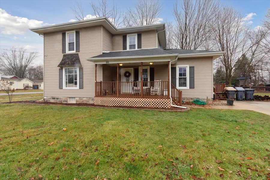 4 bedroom, 2 full bath historic Schoolcraft home! Sitting on a large corner lot, this home has over 1900 finished square feet of living space. Main floor features wood trim, nice sized living room, formal dining room, kitchen, main floor laundry, bedroom, and full bath. 3 more bedrooms and a full bath are located upstairs. Partial basement and additonal storage room. Nice sized deck and a storage shed. Sale includes a one year home warranty through AHS!