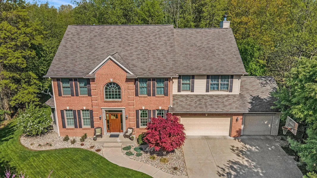 Modernized and Updated Two Story 5 bedroom Home in Hidden Lakes. Hidden Lakes is an association of home owners that has masterfully integrated privacy and nature as aspects in this community. Within 15 minutes of both Kalamazoo Hospitals and downtown Kalamazoo, this property lets you escape the stresses of the city but still keeps you close for short commute times. This homes' main floor opens up into a formal dining room as well as a private office. The flow of the main floor allows for natural light to show throughout this level. Moving to the rear of the home you will find a large kitchen with fresh looks, updated stainless appliances as well as wine fridge and side by side full fridge and full standing freezer. Rounding out the features of the main floor are the dual staircases to the second floor as well as the open gathering room to watch sport events or host family or friends. At the garage entry you are met by the laundry room and custom-built doggie kennel.