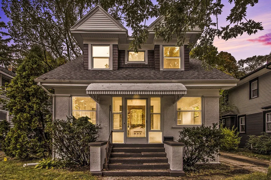 You'll be proud to call this lovely three-bedroom, two-bath home yours! Step through the unusually large, welcoming front door and onto the inviting front porch perfect for morning coffee or evening chats. Inside, beautiful original woodwork adds timeless charm. The living room fireplace is perfect for cozy nights, and the stairway to the second floor is just waiting for your family photos. Entertain in the formal dining room with built-in shelving to display your favorite collectibles. The kitchen opens to a bright eating area, and an additional family room plus half bath lead out to the fenced backyard and deck ideal for gatherings and playtime. Upstairs, you'll find three bedrooms with large closets and an extra full bath. A staircase leads to the attic, offering additional storage for all your treasures. This home combines warmth, character, and everyday practicality a perfect place to create lasting memories! Kalamazoo Promise Qualified.