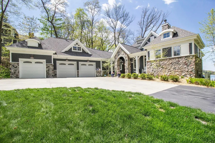 Custom lakefront home on Little Long Lake constructed in 2014 by American Village Builders and designed in concert by owner and select architect, Michael Dunn. This is a rare opportunity to own a 4-acre piece of heaven with 232 feet of lake frontage and over 500 feet of natural stream frontage. A breathtaking 500-foot lighted asphalt driveway extends back into the property with waterfront views every step of the way. This is an impressive 4,000 sq. ft. finished, 3 bedroom (potential 4th bedroom), 3 full bath & 1 half bath walkout ranch home. Stunning exterior with Michigan stone and James Hardie fiber cement siding and oversized 3 car attached garage. An inviting covered entryway with stone pillars and custom designed Brazilian mahogany front door. Main floor living room features 18 ceilings with dramatic arches, clerestory windows by Marvin, Michigan stone fireplace with Cherry wood man...