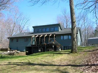 BARTON LAKE! Enjoy skiing, boating, fishing and swimming on this all sports lake! This wooded 5.3 acres has frontage on the Portage River just 700 yards from the mouth of Barton Lake. 20x40 pole barn great for the hobbiest! Motor home port. You'll love this walkout ranch with cathedral ceiling great room, brick fireplace and sliders opening to the large covered deck! Natural woodwork and cedar cabinetry kitchen with dishwasher and pantry closet. Spacious back entry with main floor laundry and 1/2 bath. Drywall (in walkout level L-shaped rec. room) is to be finished by May 15th. Per sellers: furnace (3 yrs), roof shingles (7 yrs). Included: 1/2 of front pond (stocked with bass & blue gill)! Path through woods to the west leads to the river, dock & lake!