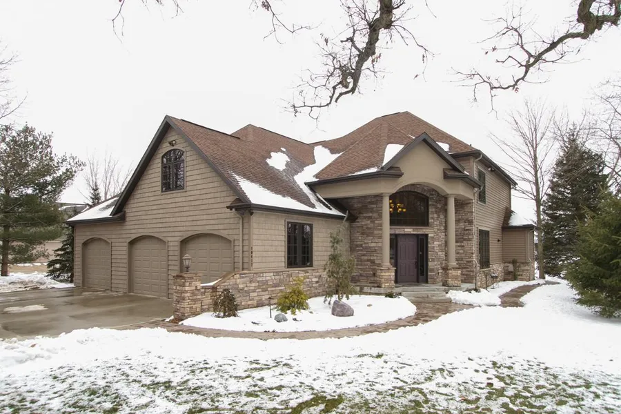 Gorgeous 5 year old Texas Twp lake front home w/100' of sandy frontage on the all sports Paw Paw Lake. This is a builders own home and the finishes are spectacular with unique ceiling and room design, large open spaces and beautiful lake views. The Great Room is stunning with a half oval design, wall of 2 1/2 story windows, FP flanked by built-ins and a mirrored water feature above. The Cherry and Granite kitchen is a dream with stainless appliances, stainless backsplash, eating bar and dining area overlooking the lake. The main floor master has a barrel ceiling with indirect lighting, sitting area overlooking the lake, lovely master bath and closet. Upstairs are 3 addl. BRs, 2 very nice baths and a family/entertainment area overlooking the lake. There is a spacious FDR, full bath off the lake for convenience, half bath off the garage, MFL, 2 furnaces & C/A, lots of storage in the crawl. A 3 car garage is attached, but there is an additional 3+ car detached garage and stamped sidewalks