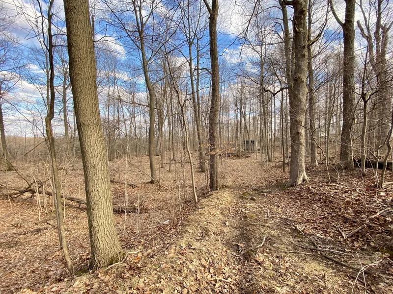 This is primarily a thick hunting parcel surrounded by big farm country, it is mostly thick cattails, poplars, and brush with flower field creek cutting through its north side. This is the kind of sanctuary that big bucks feel comfortable in. The road frontage is primarily higher hardwoods and a Vacant Land Assessment for Suitability of Onsite Sewage and Water Well Supply System was completed in 2020. There is also a convenient driveway that runs parallel with the road from the north to the south end making it easy to pull in vehicles with trailers and pull out without having to back up. As you go east from the road it drops down into a low piece of land that runs east and has some drier islands that deer gravitate to, in fact, the center island has a blind that is nicknamed the hub because deer come from all directions to pass through it. There is also some high ground in the eastern pa...
