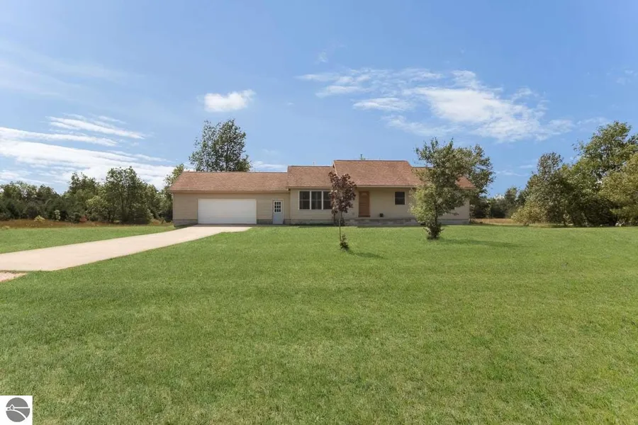 Well maintained 2 bed 2 bath ranch with plenty of breathing space. This home offers the quiet of the county side, the ease of main-floor living, and the convenience of being less than 10 minutes from downtown Kalkaska. With a large 30 x 40 pole building for storage, a huge yard, an unfinished lower level that provides room for expansion, central air, hardwood flooring all in great condition! This home packs a lot of value.
