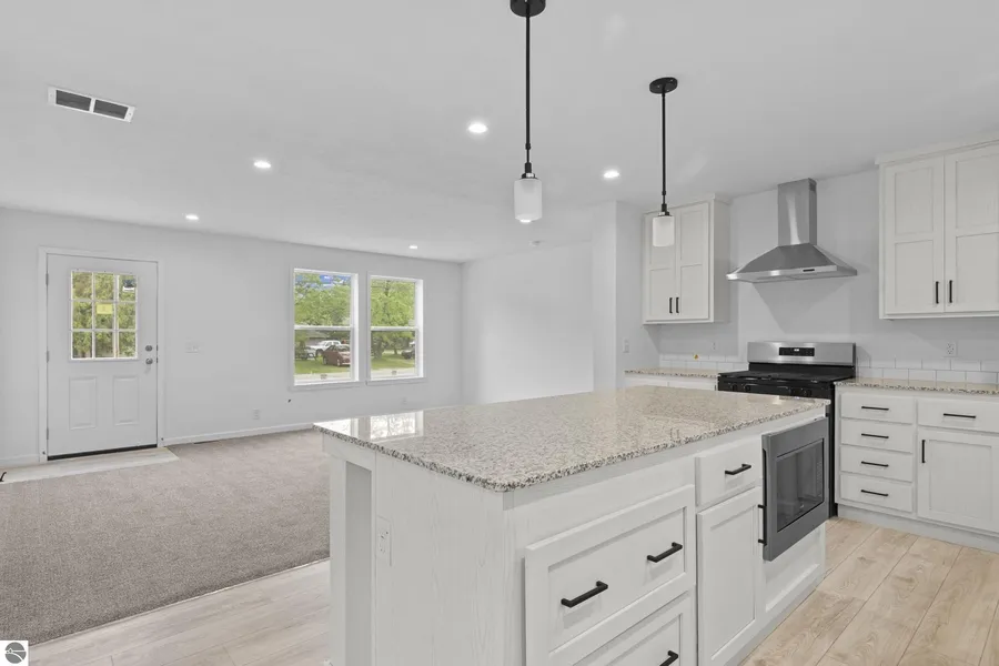 PRICE IMPROVEMENT! Available Now~The New House on the block! This lovely home is a 2025 build and ready for its owner. Enjoy all main floor living with this bright and airy 4 bedroom, 2 bath home. Nothing says Welcome like an open floor plan with gracious kitchen space featuring a combined dining area, island snack bar, all new appliances and granite countertops. The primary bedroom features a spacious private 3/4 bath and roomy closet space. Centrally located just off of M72 in Kalkaska near the Kaliseum Recreation Complex, and minutes to downtown. This home is definitely a contender if you're home shopping. Why buy used when you can buy new?