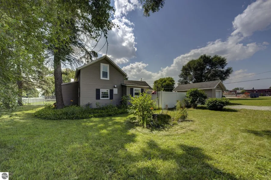 Investment or REHAB opportunity! This cute cottage style, 1 1/2 story home is situated on a corner lot just blocks away from downtown Kalkaska. Walking distance to so many things within minutes. The home offers 3 bedrooms and 1 full bath. The kitchen and dining areas are combined with a wall that separates the living room (current owner is using one of the bedrooms as the dining room). There are 2 separate entrances where each serve as 'mudroom' space for organization and convenience. The full bath also serves as the laundry room. Step upstairs to find the 3rd bedroom along with a loft area where the current owner installed pipe bar for extra closet space. The backyard is fenced in where there is a small patio and firepit area. The detached garage is fully finished with a concrete floor and drywall. The home has been evaluated for a new foundation. Several homes on this street have had the same work completed.