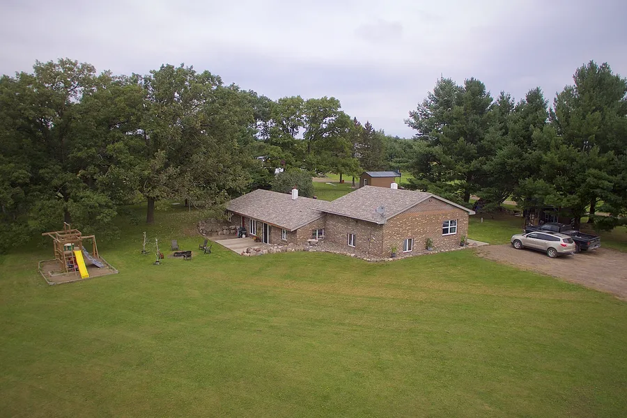 Welcome to a gorgeous farmstead on a dead end road! Valleys, trees, pasture, & fabulous hunting= the dream combination you have been waiting for. Trails throughout - check the aerial photos! A wood furnace & wood stove keep you warm & toasty, and your feet will never be chilly with in floor heat! The brick work between the living & dining rooms is stunning, and you'll love all of the storage here! Crops, animals, hunting - this land is perfect for whatever your new adventure is!