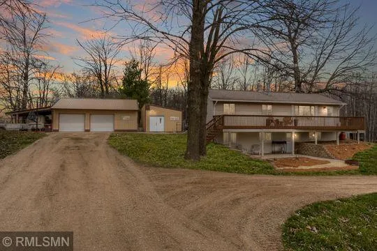 Beautiful country home featuring new landscaping including new gravel on driveway and new retaining wall. Set on on 3+ acres! Very well-kept 5 bedroom, 3 bathroom walk-out rambler. Upper level features open-concept with updated kitchen, and spacious living room and 3 bedrooms! Fully finished walkout lower level complete with family room, 2 more bedrooms and 2 bathrooms. Beautiful deck off the back leads to fully fenced yard. Heated workshop off the huge 2+ stall garage. Extra covered parking perfect for added storage or boat. Off the front you'll find lovely new landscaping and a deck that spans the length of the house, great for enjoying meals or entertainment outside. New septic (2017)! Unique heating system with standard forced air furnace plus wood burning alternative. Propane tank is owned, which gives homeowners proprietary choice on best value propane.