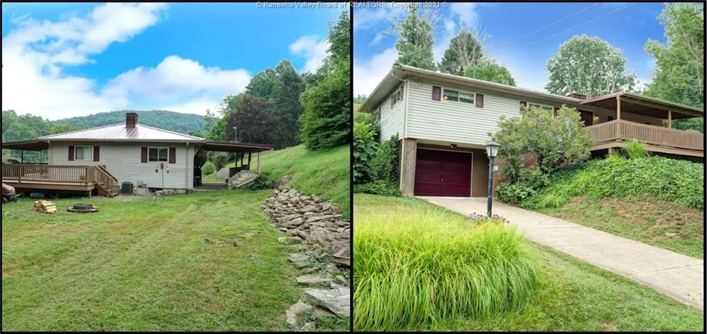WOW - less than 5 min from I-79 and about 25 mins from Charleston-Huge wrap around deck partly covered great for entertaining-covered back patio wonderful for a quiet evening or for social gatherings-spacious family room -open concept with office space -huge amount of storage -Wood Plank flooring-many updates-convenient Laundry chute-flat land across road conveys with this listing - offering additional parking with carport -great for fishing, gardening, etc.