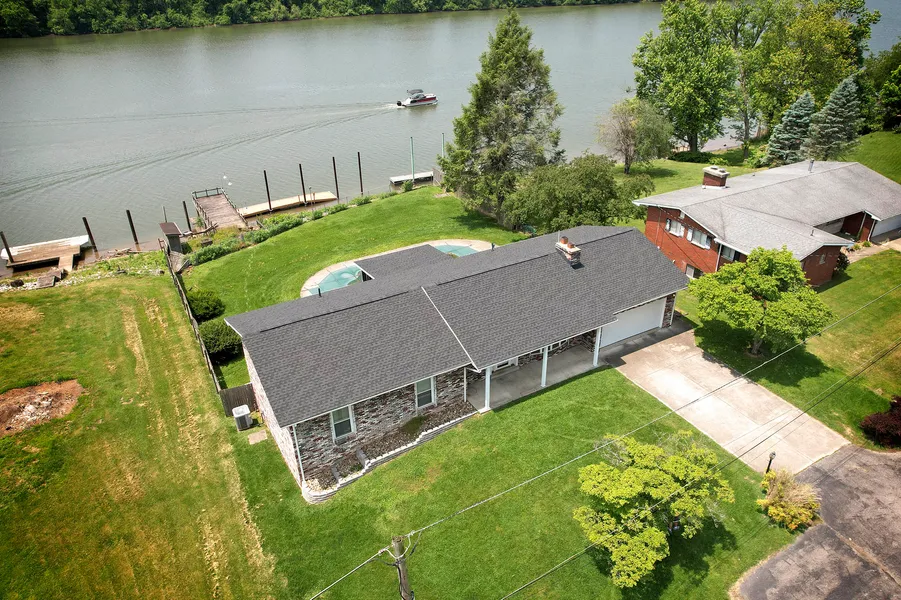 If you are looking for an all-brick rancher with a river view, pool, patio, new roof, 3 bedrooms, 2.5 baths, 2