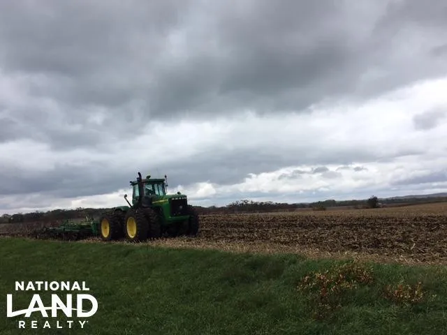 +/-58.70 acres of the original 200 Acre Farm Offering Tillable Ground, Building Site with Home, and Hunting/Rec Land that Abuts State Wildlife Management Area! Purchase the entire farm or see additional listings in four separate parcels: 1) building site; 2) tillable on west side of building site; 3) tillable on east side of building site; 4) hunting/rec land north of tillable land on west side of bldg site. Survey being completed. This 58.70 acre parcel has approximately 53.90 tillable with CPI 86.9. Tile, outlet and inlet information in comments below.