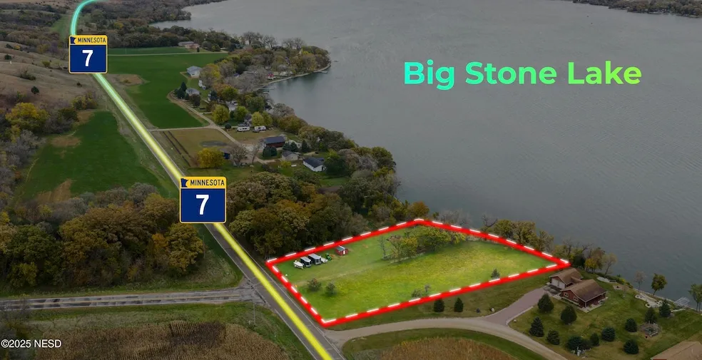 ONE OF THE MOST UNIQUE LOTS ON THE MINNESOTA SIDE OF BIG STONE LAKE. 270 FEET OF SHORELINE & AMAZING VIEWS! THE CENTER OF THE LOT FEATURES A GRADUAL SLOPE THAT LEADS TO YOUR OWN PRIVATE OASIS. POSSIBILITIES ARE ENDLESS FOR THIS LARGE 1.7 ACRE LOT. 12 X 12 SHED INCLUDED. NO COVENANTS.