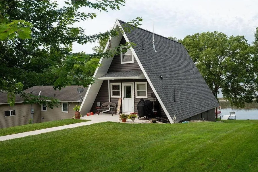 This A-frame house on the east side of Diamond Lake has 3 bedrooms and 2 bathrooms in the main house with another bedroom suite with a brand new 3/4 bath in the area above the 2 car garage. The main house provides a finished, walk-out basement with 2 bedrooms. a full bath, laundry, utilities and several storage options. The loft with a bedroom and sitting area is above approximately half of the main level and is accessed by alternating tread stairs. The spindle railing was recently replaced providing added safety and modern aesthetics. Main level has another full bath along with an open kitchen and living room with vaulted ceiling and patio doors leading out to the low maintenance deck for a beautiful view of the lake, the back yard, and the sunsets.