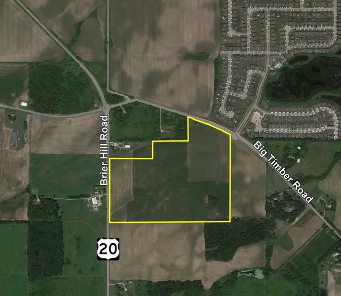 Major Highways: U.S. Route 20 is the west border of the property, Interstate 90 is 7/8 mile north, Illinois Route 47 is 1 3/8 miles southeast, and Illinois Route 72 is 2 miles south of the property.