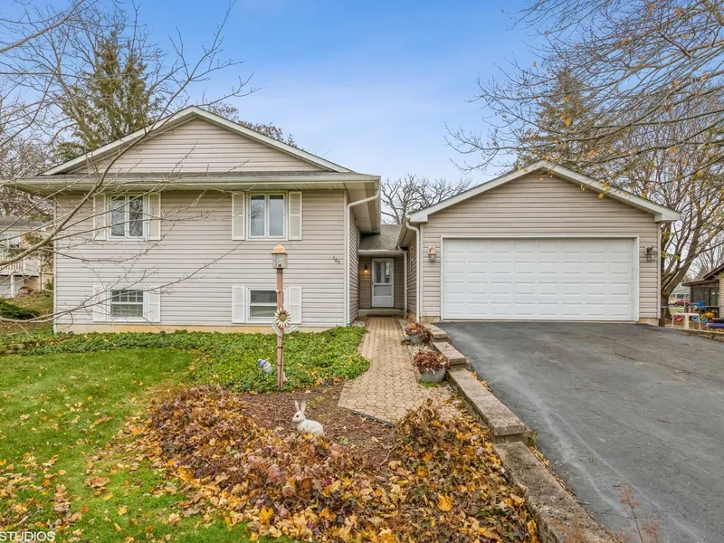 Idyllic Windmill Meadows split-level perched on a hill and ready for new family to make it their own. First time on the market. Main level features open floor plan with 3 bedrooms including primary with full bath, kitchen with tons of cabinetry, pantry and center island, dining room with sliding doors leading to beautiful deck and large living room with new bay window. Lower level is bright and light with large windows and features spacious, cozy family room with wood burning fireplace, 2nd full bath, craft room and 4th bedroom. Additional special features include large screened-in porch and heated 4-car garage with workshop area. Beautiful landscaped half acre lot with shed and fire pit in fenced-in backyard. Easy access to Randall Rd/I90, shopping, dining and minutes to Sherman Hospital.