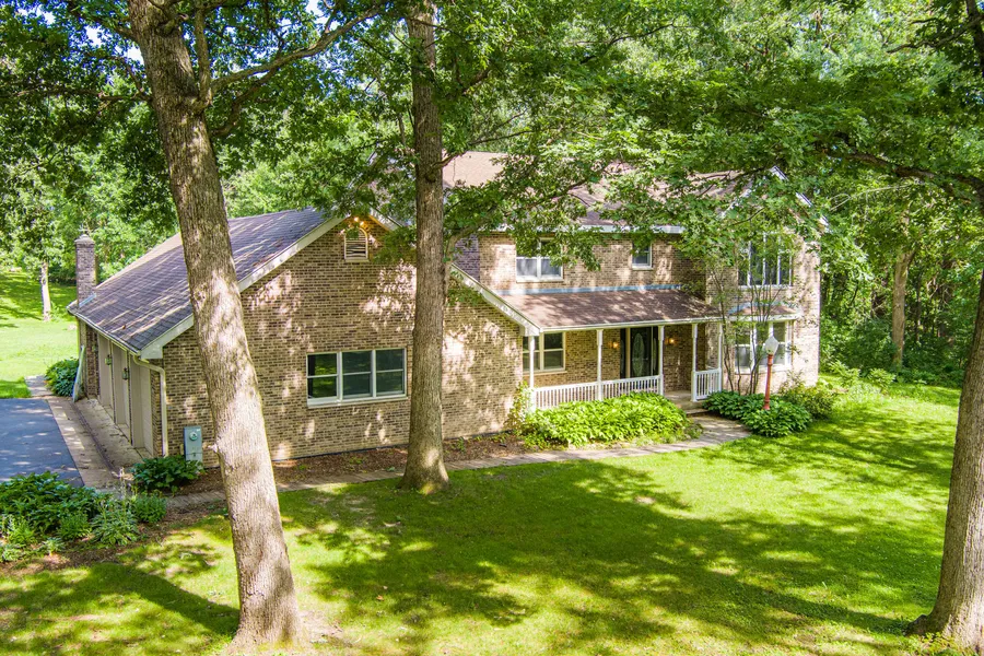 SELLER WILLING TO OFFER CREDIT of $7000 FOR CLOSING COSTS OR A RATE BUY DOWN! Stunning secluded forest estate! This custom 2-story 4,341 sq ft 5 bedroom, 4 bathroom brick home sits on 5 acres filled with mature oak trees, plum grove, grapevines, and apple trees! Great for entertaining, the main floor features oversized family room with a brick surround wood burning fireplace, vaulted plank ceiling with skylight, and large windows overlooking the private backyard. Kitchen features granite counter tops, new ss kitchenaid appliances, island, walk-in butler's pantry, and endless storage. Laundry room includes large capacity washer & dryer, sink, and laundry shoot. Main floor bedroom has walk-in closet. Updated full bath. Large sitting room and formal dining complete the first floor. Extra wide staircase with skylight leads upstairs to gorgeous master suite featuring, large decorative windows, walk-in closet with custom shelving, and updated master bath with his/hers sinks, separate toilet, luxurious bath, built-in Bluetooth, and tile surround walk-in shower! Three other spacious bedrooms, full bath, and flex room perfect for office, game room, gym, 6th bedroom completes the second floor. The beautifully finished basement features waterproof engineered flooring, full bath, full kitchen, craft or office area, lots of storage and separate entrance to garage! Perfect for in-law suite, rental income, or adult children. Intercom system. Large, 2 tier deck to enjoy the wildlife and sunrises! Oversized 3 car attached garage with individual doors has raised area for workshop. 2 sheds. 2,300 sq ft barn with attached chicken coop is perfect for RV/boat storage, shop, horse barn, etc. On-demand tankless water heater. 400 AMP electrical service with transfer panel wired for generator. Dual furnaces for energy-saving & Nest thermostats on both levels. Adjacent to Burlington Prarie Preserve. Excellent District 301 Burlington Central Schools. A MUST SEE! Schedule you're private showing to this impressive estate today!