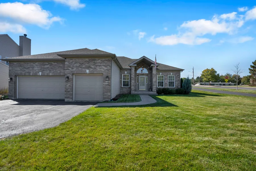 Prepare to be awed! Fabulous, spacious, brick ranch in sought-after Timber Glen. Corner lot with a beautiful neutral interior. Inside, you will fall in love with the nine-foot cathedral ceilings and gleaming hardwood floors! Great open-concept, perfect for loved ones and entertaining! The designer eat-in kitchen features 42-inch oak cabinets, upgraded stainless steel appliances (upgraded in 2021) and a pantry. The spacious, extended family room features a wood-burning fireplace with a gas starter. Spacious home with convenient first floor laundry, extra shelving and washer and dryer (upgraded in 2021). The big primary suite features a vaulted tray ceiling and a large walk-in closet. The luxury bath offers a double vanity, soaking tub and separate shower, and beautiful custom tile work. Spacious bedrooms with double closets share the splendid hall bath. You'll think you're dreaming when you go down to the lower level boasting extra room for a home office or spare bedroom! Updated central air and humidifier in 2021. Lovely backyard to enjoy family gatherings or some relaxation time in the serene landscape with a newly stamped concrete patio. Timber Glen is a fabulous community to reside with many parks and trails. Great District 300 Schools and Cambridge Lakes Charter School. You are within a short distance from Interstate 90, the Metra train, and the Randall Road Corridor with all the shopping, restaurants and entertainment you could ever want. This immaculate beauty is turn-key ready! Welcome home!