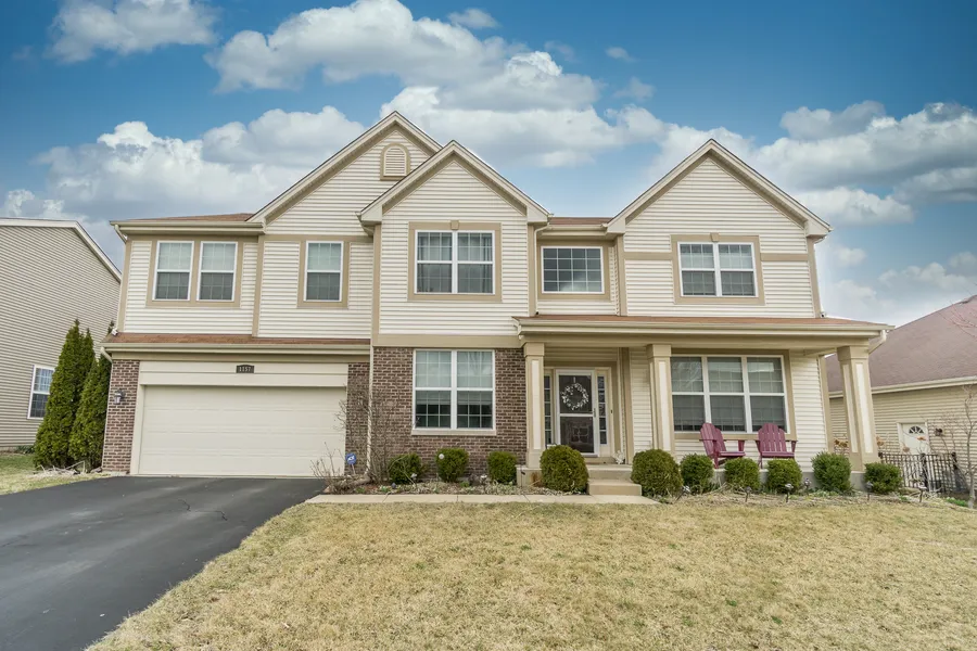Your new home has everything you could dream of and is one of the largest in the area. Featuring 4 bedrooms, Family Room w/ fireplace ,2-1/2 baths,3 car garage (tandem), plenty of storage shelving & deep pour basement. Private premium lot that backs up to nature. This home offers an open floor plan ideal for entertaining. LR & formal DR w/pillar & custom crown moldings throughout the house. French doors in office located on the 1st floor. Volume ceilings w/a dramatic floor to ceiling fireplace. This house boasts lots of windows therefore plenty of natural lighting. Chef's kitchen w/granite counters & back-splash, upgraded cabinets w/under-mount remote lighting, SS appliances. including wine refrigerator, pull out drawers in the pantry and over-sized island. Sliding glass doors off eating area. Stamped concrete in front entrance and and a work of art stamped back patio w/lights. The focal point of this tranquil outdoor setting is a stone fire-pit w/stone sitting area. Master suite w/soaker tub, separate shower, dual sinks, his & her closets PLENTY OF CLOSET SPACE,Oversize secondary bedrooms & half bath on1st floor. Amazing community pool, recreation building, learning center, play ground,fitness center, tennis, skate park, baseball fields, stocked ponds,12 parks, walking trails and more. Walking distance to charter school. The basement could be finished to add more living space. Alarm system set up installed. Partially fenced. Conveniently located Close to I-90 & Rt 20 and Metra station. Amazing home, PRICED TO SELL in an amazing community. A complete new roof has just been installed. This won't last!
