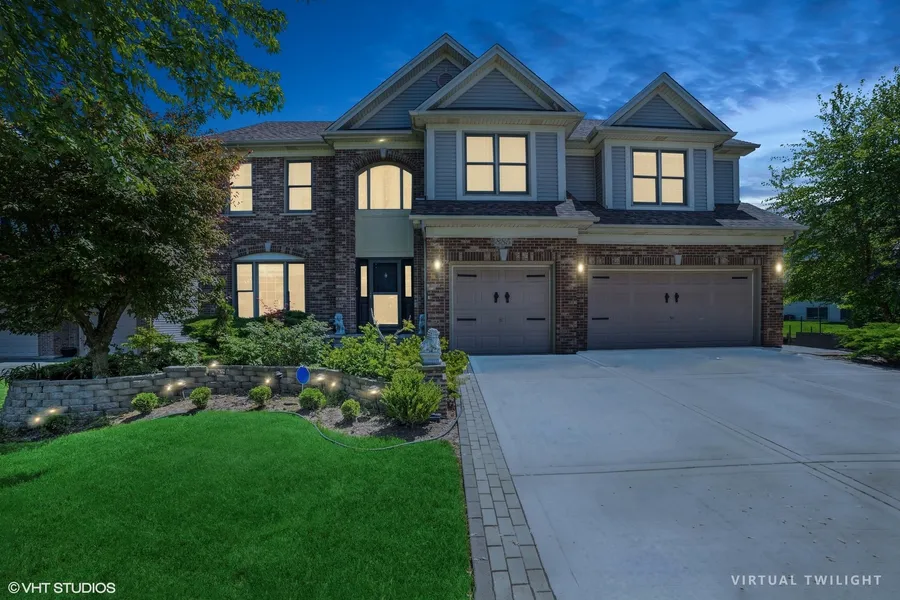 Experience the epitome of luxury living in this exquisite brick home nestled in Gilberts! Step inside to discover a luminous and spacious floorplan, adorned with gleaming hardwood floors, elegant white trim, and a magnificent two-story family room boasting a cozy fireplace and expansive windows flooding the space with natural light. The updated kitchen is a chef's delight, featuring ample 42" maple cabinetry, sleek granite countertops, stainless steel appliances, a breakfast bar, and a center island. Enjoy morning meals in the separate breakfast room with its vaulted ceiling and French doors leading to the paver patio and professionally landscaped backyard, surrounded by mature trees for privacy and tranquility. Retreat to the luxurious master suite complete with a tray ceiling, generous walk-in closet, and a private bath oasis featuring a whirlpool tub, separate shower, and double vanit...