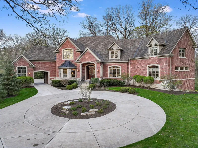 Stunning, custom built home situated on 4 acres of lush landscaped grounds. Enter through the private gated driveway to discover this Bellefleur masterpiece made of all brick and stone. Marvel at the newly updated landscaping highlighted by mature trees and lush gardens. A 14-foot high 4-car garage with radiant heat allows for a car lift to easily be added and is highlighted by a beautiful porte-cochere. As soon as you enter the front door, you are greeted by exquisite chandeliers and an extraordinary floor to ceiling stone fireplace. The 2 story coffered ceiling and massive windows allow for the home to be flooded with natural light. The first floor also includes a gourmet eat-in kitchen that features porcelain tile, custom cabinetry by Autumn Woods and two large center islands with a warming drawer and a vegetable sink. The beverage station includes a wine cooler and icemaker. A large walk-in pantry is situated just off the kitchen. Updates include quartz countertops with a newly installed Kohler deep kitchen sink and new contemporary light fixtures. Adjacent to the kitchen is a renovated sunroom. The first floor also includes a large laundry room, with new washer and dryer, and an adjacent newly renovated office offering a beautiful view to the backyard. With direct access to the garage, this office offers the perfect combination of convenience, elegance, and privacy. Additionally, the first floor offers the coveted first floor master suite. This spacious suite offers his and hers walk-in closets, crown molding, and beautiful windows providing ambient lighting. Private master bathroom features dual vanities, a whirlpool tub, and a separate shower with detailed tile work and body sprayers. The second level features 3 large bedrooms, 2 of which feature their own "en suites." New laundry room was just completed on the 2nd level for added convenience. The 2nd floor loft was recently converted to a beautiful and spacious 4th bedroom with dual closets highlighted by a beautiful window with a serene view of the front yard. This level also features a gorgeous cat-walk allowing for unencumbered views to the picturesque great room and foyer. Rounding off the interior, the massive finished, look-out English basement features heated flooring with a full bathroom and brand new 5th bedroom equipped with a custom closet and egress window. This 3,000 plus sq ft finished basement also features newly painted walls, window trim, and columns. Beautiful, large wet bar and "wine tasting room" are added bonuses. The large crawl space provides for plenty of storage. Step into the backyard to find a large concrete stamped deck with a commercial gas grill. Just below you will find a stamped concrete patio with a fire pit perfect for large gatherings. This beautiful home is equipped with a whole house generator, two A/C units, two water heaters, two furnaces, two sump pumps and a whole house water filtration system! Highly rated District #101 school district, close to shopping, restaurants, parks, and only 5 minutes away from the I-88 corridor. Home is situated directly across the street from the beloved Dick Young Forest Preserve featuring beautiful walking trails. This home has been meticulously maintained with all recent updates done in the last few months. These updates also include re-staining of ALL hardwood floors, stairway iron spindle installation, and updated ceiling fans in all bedrooms. This home is perfect for anyone searching for both luxury and privacy! Call for your private showing today!!