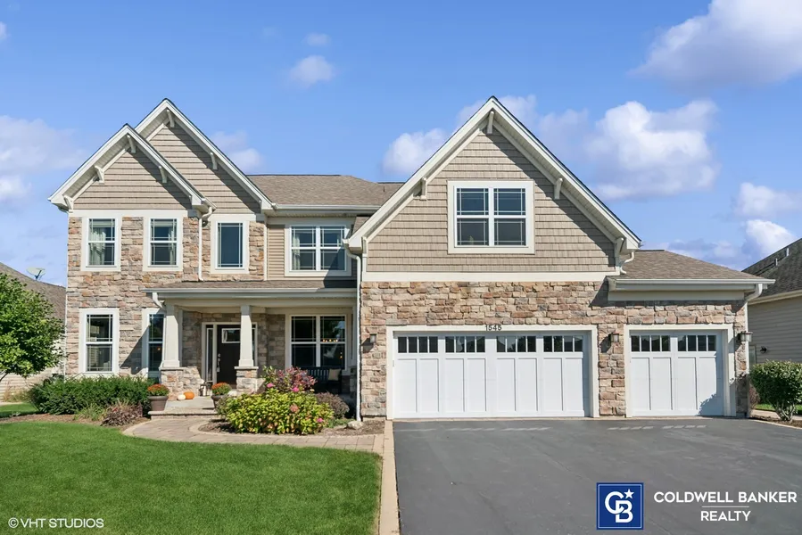 DON'T WAIT TO SEE THIS STUNNING BLACKBERRY CREEK BEAUTY! Welcome to 1545 Fairfield Dr.! What a value for all this property offers to its new owner! Arguably one of the best views in Blackberry Creek! 10 year new. When you enter the bright, 2 story foyer, you will quickly be welcomed by the Pottery Barn decor and stylish dining room. Adjacent is a lovely, bright living room with an abundance of natural light. Convenient first floor den with french doors, offers a great home office, playroom, etc. Open floor plan with cozy family room, boasting a custom stone fireplace. The chef's kitchen is an entertainer's dream. Upgraded stainless steel appliances, granite, stone tile backsplash, both in kitchen and butler pantry. Reverse osmosis with water softener. Engineered hardwood floors on entire main level. Extensive millwork throughout the home. On the second level, you will find four spacious bedrooms. One of the bedrooms has a private en-suite. Enjoy movies in your very own media room. Primary suite has large sitting room. What a great space to relax and read a book! Basement is roughed in for a bathroom. Outside you will find an amazing custom built patio featuring a natural gas firepit with build in LED lights, brick paver sidewalks to rear of home and front door. Natural gas line to grill area. Shed conveys with property. What a complete outdoor oasis. Oversized 3 car garage; insulated with epoxy floor, insulated carriage doors, lift master garage door openers. Minutes from elementary school, I-88 interchange, shopping, dining and METRA.