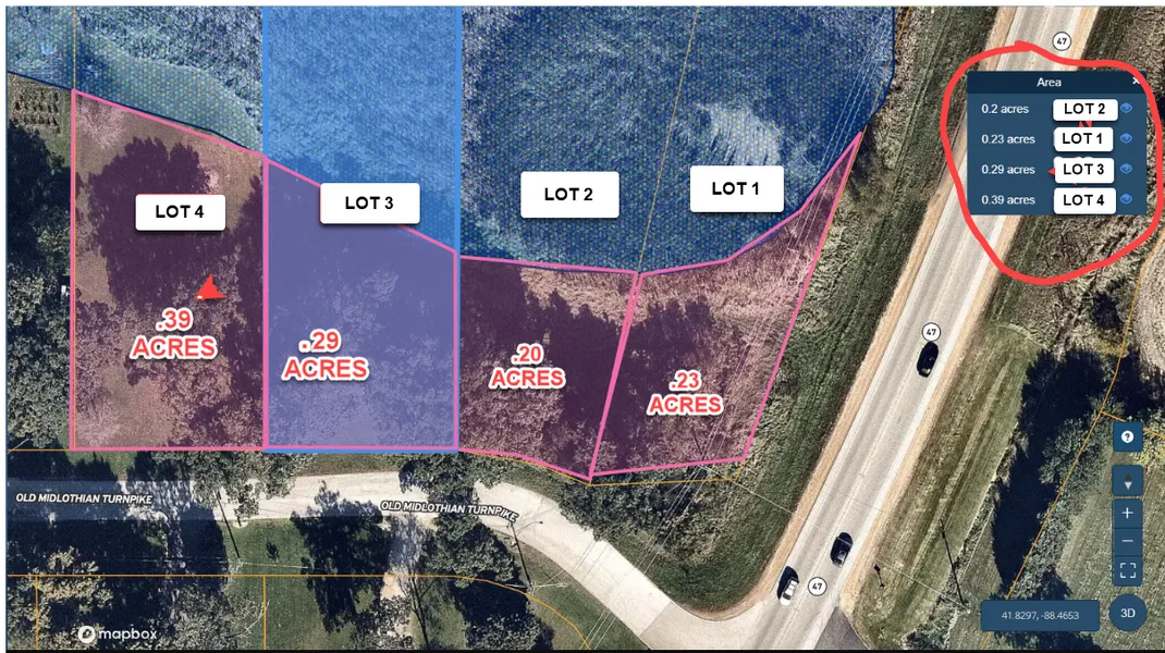 GPS: 41.830060, -88.46585 (approx center of 4 lots.