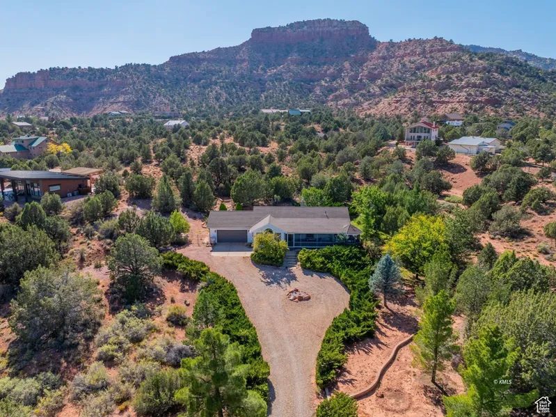 Premium location on Vermillion Drive this one level move in ready home offers the perfect blend of privacy, comfort and casual sophistication. The kitchen sparkles and shines - white quartz countertops, freshly appointed fixtures and appliances. The dining area has a cozy fireplace and direct access to the patio and fully fenced back yard. Large separate living room with picture perfect views. Vaulted ceilings throughout. Engineered mahogany flooring. Main bedroom with a beautifully finished bathroom. Quality at every turn including the New Roof (2022) and New HVAC system. 2 Car garage with work bench and shelving. The screened in porch is the ideal place to relax all year round. Nestled below the red rocks on 2.27 acres, in a desirable location of the Kanab Creek Ranchos - this home is turn-key and perfect.