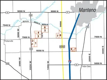 General Location: Tracts #1-8 are located southwest of Manteno between 6000 N and 9000 N. Tracts 9-11 are located south of Manteno on the east side of I-57.