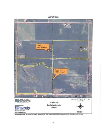 2 Tract Auction 77 and 160 acres in size. Tract 1 has 75.61 acres tillable and Tract 2 has 152.14 acres tillable. Tract 2 is located on Route 17 west of Kankakee. Call John Tammen at 815-936-8976 for a complete brochure.