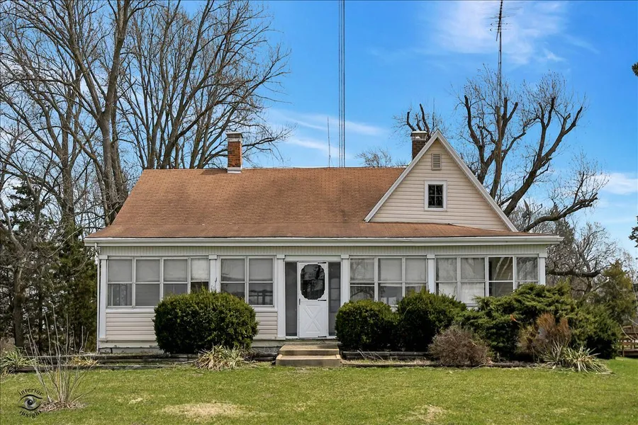 Picture amazing views of sunrises, sunsets or star-gazing over this beautiful farmland setting of this 3 bedroom 1 bath farmhouse with large screened front porch. The home sits on 2 wooded acres and is less than 3 miles from I-57. Bring all of the toys for the 4 car heated garage-Beautiful original woodwork-Newer furnace & A/C-Large back patio/deck-Family room could be 3rd bedroom-Full basement and Walk-up attic-Mudroom-Country setting close to town- As Is- Call today!