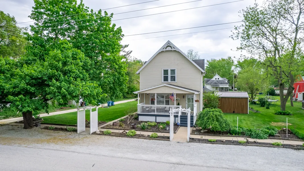 When I tell ya this place has "ALL THE BELLS & WHISTLES" that is no exaggeration! The 20' covered front porch greets you - stunning foyer with grand staircase and amazing woodwork (including the original, and still operational, pocket doors) welcome you into this B-E-A-U-tiful 4-bedroom, 3-bath, vintage but modern home with all the upgrades you could possibly want. Granite countertops, 42" antique white staggered raised panel cabinets with soft close doors & drawers, are just some of the amazing touches that ensure THIS KITCHEN WILL NOT DISAPPOINT. The kitchen (which is open to dining room) also boasts glass tile backsplash, farm style basin sink, high arc retractable faucet, recessed lighting (including over prep areas), all stainless-steel appliances, including freestanding gas range with double oven (all 5 years young), peninsula breakfast bar and additional individual cabinet which is perfectly suited for a wine or coffee bar, a rustic ceiling fan with trendy mason jar glass shades & Edison bulbs. Other main floor features include 9' ceilings, brand-new laminate flooring in living room & dining room, cedar trim, and a main floor bedroom which could easily be used as a home office. The main floor bath features glass tile accent wall, original refinished cast iron clawfoot tub with shower wand, oval front, Shaker style linen cabinet & vanity, vessel sink with waterfall faucet and wood plank style ceramic floor. Three bedrooms on the second floor allow for private sleeping quarters separate from entertainment areas. No wasted space in this home - there is also a semi-finished attic area which could serve as an added closet (think holiday decor, luggage or even hobby space - you decide). Fall in love with the spacious master bedroom featuring a bath adorned with 18x24" pewter color tile, river rock floor & inlay, glass shower surround, as well as jacuzzi tub - the wood trim & corrugated steel accents carry the rustic yet classy theme through the owners en suite. Super cool spiral staircase leads to full, partially finished basement - 20x11 family room with recessed lighting, built-in bookshelves/display cases and mounted surround sound system, another full bath, as well as exterior access from storage/utility area. Sliding glass doors (with built in blinds) expand your living space from kitchen to your AMAZING OASIS of a BACKYARD! Covered 26x16 deck with ceiling fans, wagon wheel light and distressed siding add to the character of the home; the mounted TV & speakers will bring your party to life! Step down from the main deck to the lower 13x14 deck and jump right into your 18x36 oval pool without getting grass on your feet (the pool has gas & solar heat and new liner). Enjoy tranquil, relaxing evenings around the brick fire pit below your lighted pergola while taking in the lovely surrounding lighted landscaping (which just so happens to have an automatic watering system), oh and don't fret over your fire burning out - there's plenty of storage for firewood in the covered wood rack nearby. Attached concrete dog run with drain makes for easy clean up after your furry family members. 12x16 shed with electric, 50-year siding, steel roof, two windows & double doors allow bright, easy storage and access to mower & yard tools. Many major mechanicals are newer including UV light filtration system on furnace for super clean air 5yrs, all duct work with high & low returns for extra efficiency 8yrs, humidifier 5yrs, tankless hot water heater 6yrs, Generac whole house generator (which runs everything) 6yrs, drain tile under entire basement floor with vapor barrier on floors and walls 10yrs, sump pump, ejector pit & battery back up 10yrs, water softener 6yrs, electrical panel 6yrs. All this, along with a charming small-town environment and award-winning school district. Nothing to do but UNPACK & ENJOY. Your friends and family will be envious!