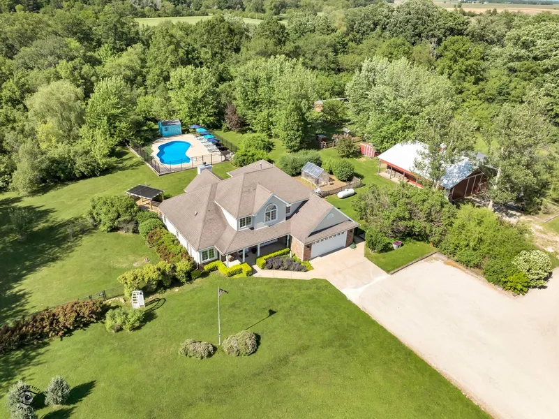 Welcome to your private retreat on a gorgeous piece of land only 50 minutes South of Chicago! Over 6 wooded acres featuring outbuildings and a 20x40 in-ground pool installed in 2016. Gorgeous updated home with 1st floor master bedroom with sliders leading to deck and pergola plus a corner whirlpool tub, double vanity and separate shower with double head and jets. Open bright floor plan is ideal for entertaining. Great room with cathedral ceiling and floor to ceiling stone fireplace. Extremely clean heated 30x40 outbuilding with workshop, including a wood pellet stove and insulated attic. Meticulously maintained property with many mature trees , large flower beds filled with sunflowers, 4 sheds, lean to for chickens, green house and 5 separate fenced in areas. Horses welcome. Economical geothermal heating. Whole house generator. 2 pre-fed geothermal water heaters. 2 sump pumps 2022. Appliances stay-washer and refrigerator 2022. Spectacular views out every window. Beautiful property and an amazing place to call home! Call today!