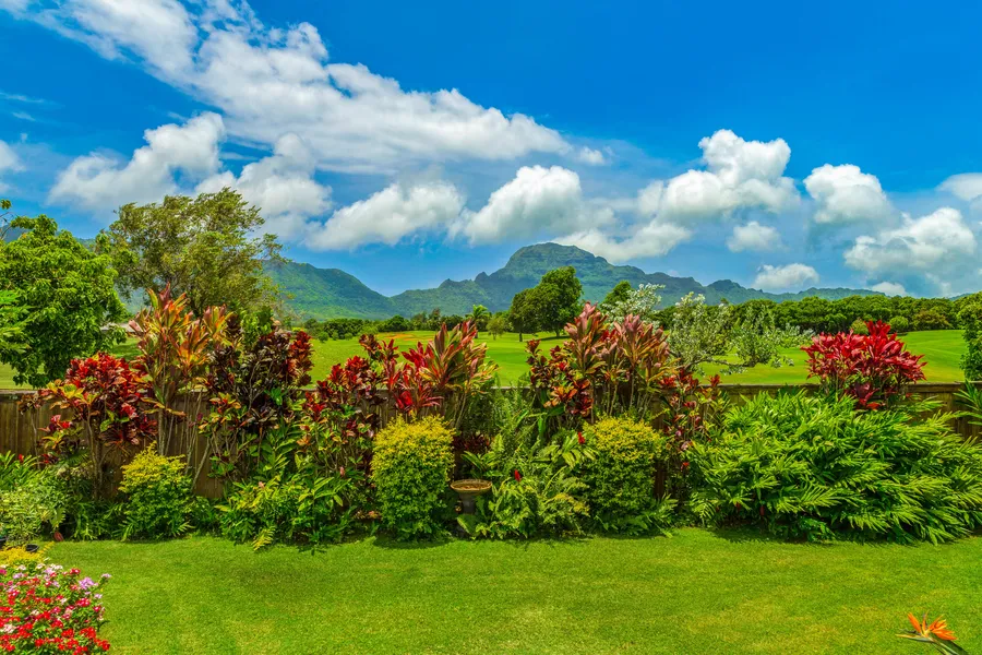 One of the best locations in the Pikake subdivision with incredible golf course frontage and mountain views, this impressive 3,160 sqft home PLUS private guest house and pool are one-of-a-kind. Experience the masterful merging of Hawaiian plantation comfort and modern sophistication in this lovingly cared for home designed by local architect, Palmer Hafdahl. This magnificent golf course residence is graced with high ceilings and sliding glass doors to a expansive deck that create the ideal ambiance for relaxation or entertainment while enjoying the tranquil views. Carefully selected and thoughtfully crafted, the spacious living space includes a comfortable family room, dining with views and a kitchen with all the bells and whistles, including a walk-in pantry, sure to please anyone who enjoys cooking. The divine master suite on the second story is nearly 1,000 sf. with a terrace overlooking the golf course with its own water features and sand traps, beautiful Mt. Hauupu, a vast walk-in closet, spacious tiled shower w/dual shower heads and a separate whirlpool tub. The main level features 2 bedrooms, each with their own private bath, 2 half baths and a home office with gorgeous built-ins and its own exterior entrance. The charming guest house has a walk-in Travertine shower with access from the pool deck and Fleetwood doors that open out to the pool and lush grounds. Other highlights include a 22-panel Photovoltaic system under net metering, an 850sqft salt pool with mosaic turtles and attached 8-person spa, 650 sf. of covered lanai with built-ins and sink perfect for outdoor bbq's. The fenced backyard is landscaped with an array of tropical flowers and has a gate leading to the 4th green of the Puakea golf course. This 1/3 of an acre lot is one of the larger parcels ideally situated to take advantage of the cool trade winds and amazing views.