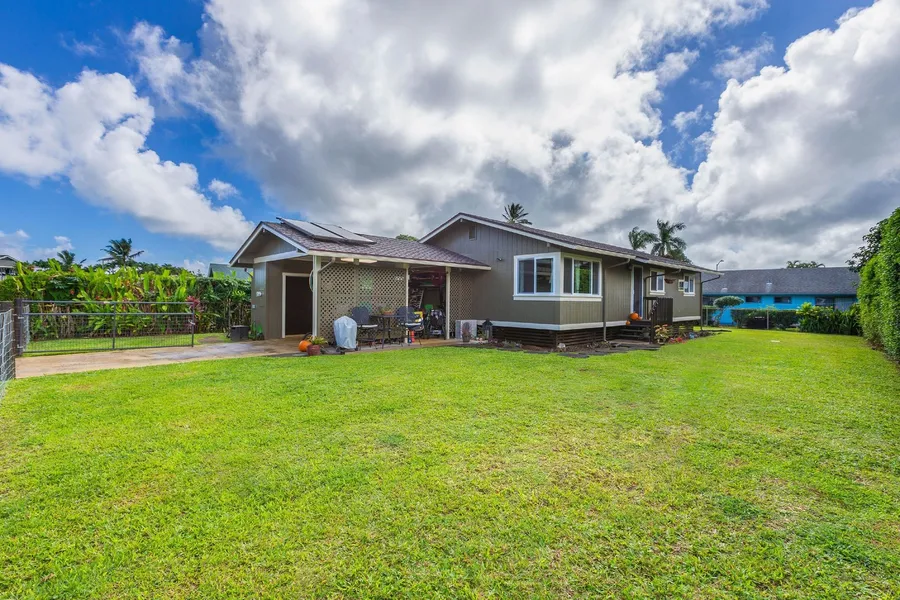 Lovely family home in Kilauea Town within walking distance to schools, shops and restaurants. Completely renovated top to bottom with high end finishes: hardwood floors through out, custom cabinets and granite slab counter tops. Newer roof, freshly painted inside and out, private out door shower and laundry area features one washer and two dryers! AC recently added perfect for those hot summer days! Both bathrooms recently renovated. Specious yard completely fenced with mature landscaping. Solar hot water heater. Easy to show!