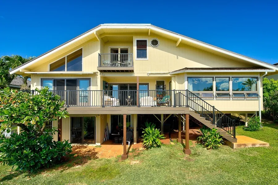 You won't be able to take your eyes off of the outstanding ocean views from this beautifully remodeled home in Kalaheo, because nearly every room has a view. Located near the end of the street on a quiet cul-de-sac. This 3-story home features mostly glass on the ocean facing walls to offer views of morning sunrises and evening sunsets over the blue Pacific as well as green pastures and coffee fields.