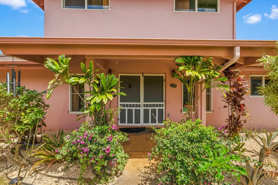 This is an extremely rare property for the price. The U shaped 2 story home was designed to take advantage of the ocean views. The large pool, glass bathhouse and expansive lanai create such an delightful space to relax and soak in the sun. There are so many fruit trees to mention on the 2 plus acres. The specimen plants are all over the property. The Crownflower tree is a magnet for the Monarch butterfly. Specially made hurricane shutters are in the garage. There is a 42 panel PV system and 2 Tesla batteries which is brings your electricity cost down. The custom canary wood floors imported from Brazil make for lovely warm feeling throughout. Inside of the house there is silence. Outside in the yard there is road noise. No effort at noise mitigation has been done yet. A rock wall, fountain as well as a double hedge are viable options. The inside of the home is quiet. The pool has a hea...