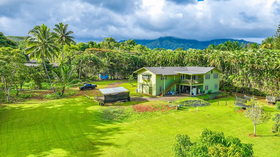 This is a great opportunity to acquire a 3,104 sf home that was constructed in 2007 and updated in 2017. The property is approved for a second water meter so a second residence can be built. The 5.97 acre property is zoned R2 so further development may be possible. The property is a beautiful oasis that contains streams, many open spaces, and wonderful views. The home has been converted into two, independent rentals. The home can easily be made a single-family residence again by opening up the stairwell between the two floors and adding a guardrail around the top opening. The house was extensively renovated around 2017 when the conversion to two rentals occurred. The flooring was upgraded to quality ceramic tile, repainted, kitchen cabinetry updated, and new appliances bought. The roof, recently re-shingled, exterior was repainted, and the original house on the property, removed. The views around the property are exceptional and provide privacy. There are 2 additional storage buildings. There are many mature trees on the property, including several fruit-bearing trees. The main floor unit comprises 2/BD/1BA, a large storage area, an enclosed laundry area, a well-laid-out large kitchen, and a large living-dining room area. The unit has direct access to a 570 sq. ft. garage and a large lanai. There are separate front and rear entrances. The second floor has a large master bedroom with a large BA and walk-in closet. The 2nd BD could be converted into 2 large bedrooms. There is a 2nd BA next to this large bedroom. The remainder of the second floor consists of a large laundry room, large kitchen with island, cathedral ceilings, and a very large living-dining room. The unit has two lanai's - one on the front and one in the rear. It has a separate entrance. Both units have many windows that allow lots of natural light to illuminate the entire space. There are three ceiling fans with lights in each kitchen-living room-dining area and one in each bedroom.
