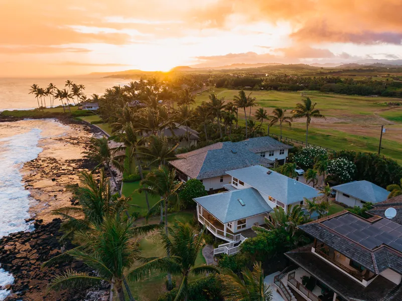 Nalu is Hawaiian for wave. From this 3 bedroom 3 and a half bathroom oceanfront home this is exactly the view you can expect. The ocean, the waves, surfers and turtles alike are enjoying both. Can you picture yourself on the lanai watching the colors of the clouds change from pink to purple to red? Then this is just the sunset oasis for you. We all know the heart of the home is the kitchen, there are views here too. The feel of indoor/outdoor tropical Hawaiian living space flows right through the front door and passes the kitchen, through the living room and onto the lanai. The primary bedroom with an en suite is on the first level. The second bedroom with its own bathroom is on the second floor as well as the 3rd bedroom which also boasts its own bathroom. The home is well appointed maximizing ocean views to its fullest. The lush green grass welcomes an ocean view with an in-ground hot ...