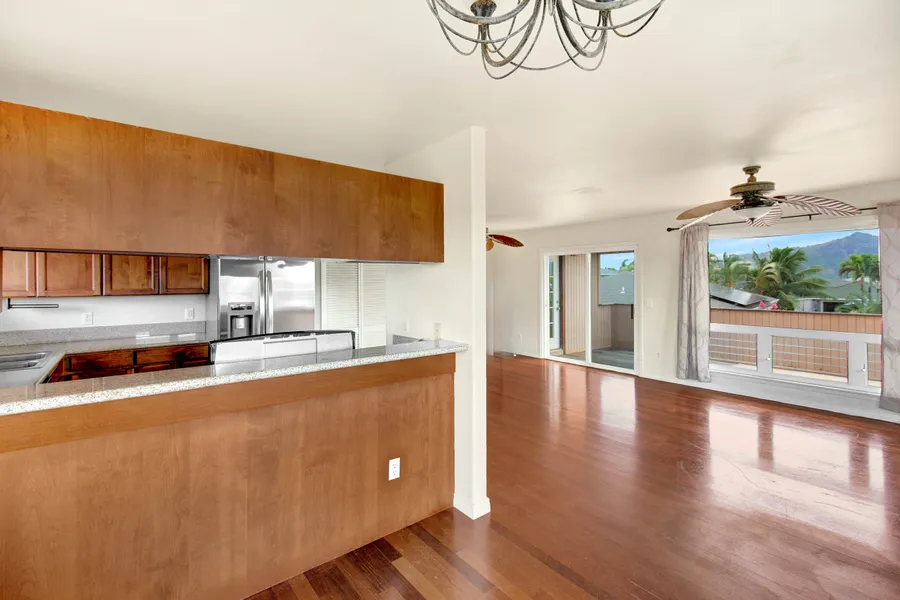 This mountain and ocean view Lihue home has an adaptable layout. There are mountain views from most upstairs windows and from its ipe lanai. The home is set back and has a field in the back. It has fantastic views of the 4th of July and New Year's Fireworks and has a 2 car garage.
