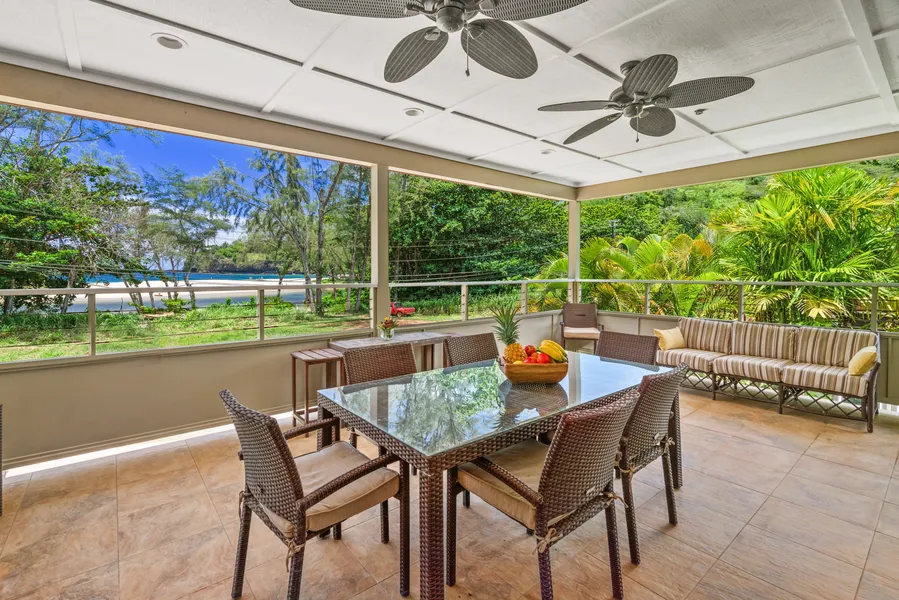 Exceptional quality beach home in an idyllic north shore location! Nestled at the end of a quiet road where the river meets picturesque Kalihiwai Bay. Stroll to the beach for a swim or enjoy a peaceful paddle up the Kalihiwai River to explore waterfalls. Launch a boat, canoe or kayak for a relaxing ocean trip or fishing, and a surfboard for outstanding surf!