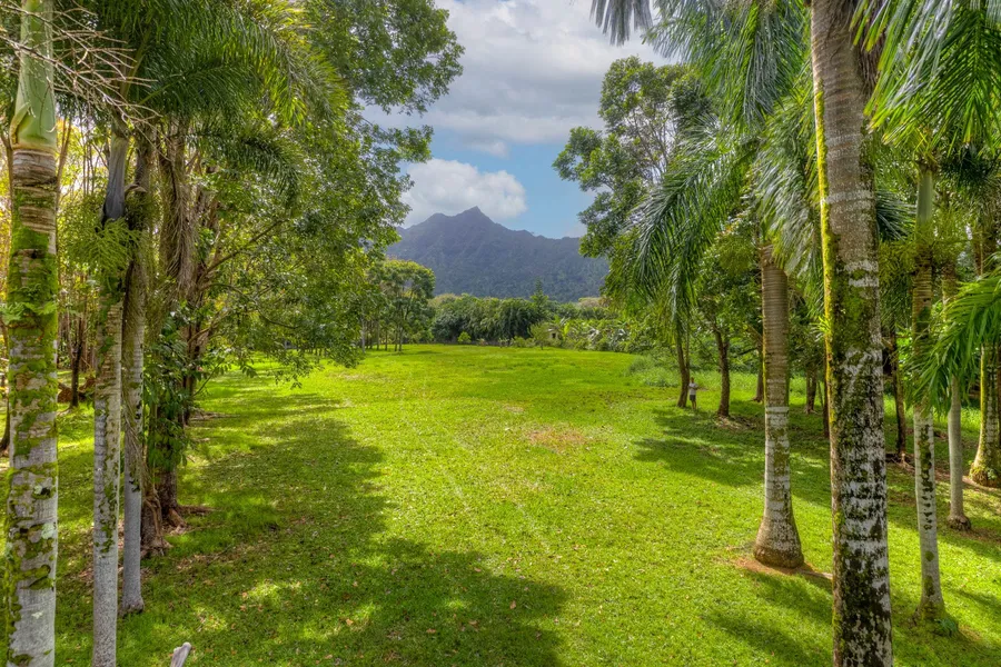 There are dramatic mountain views from this 5.5 acre parcel. The land is almost completely flat and totally usable with its own stream at the bottom of the property. Located in one of the most exclusive areas on the North shore of Kauai, Kalihiwai Ridge. There is a grove of Mahogany trees, approximately 200 ( please verify) that were planted many years ago. The property has been agriculturally dedicated since 2005 and runs till 2025. There are a large variety of fruit trees such as coconut and different varieties of citrus. Build your dream home while you farm the land.
